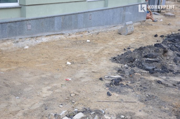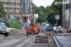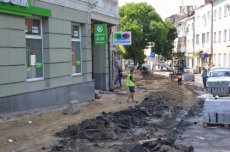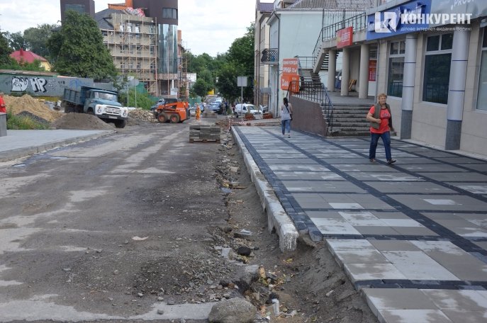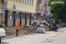 На вулиці кладуть бруківку. Вже половина роботи зроблена. Повністю ремонт планують завершити до Дня незалежності.