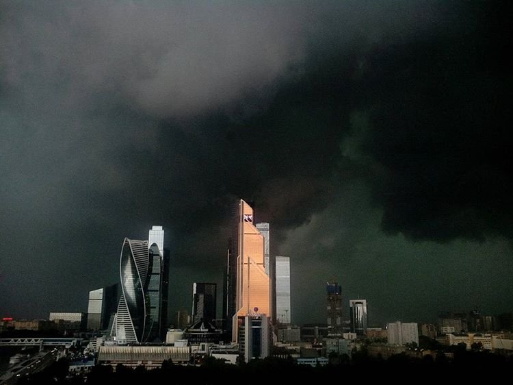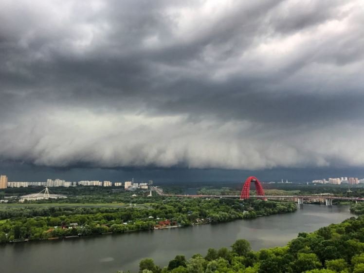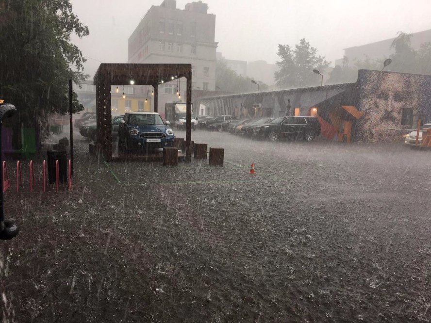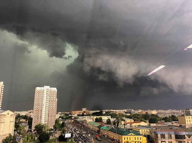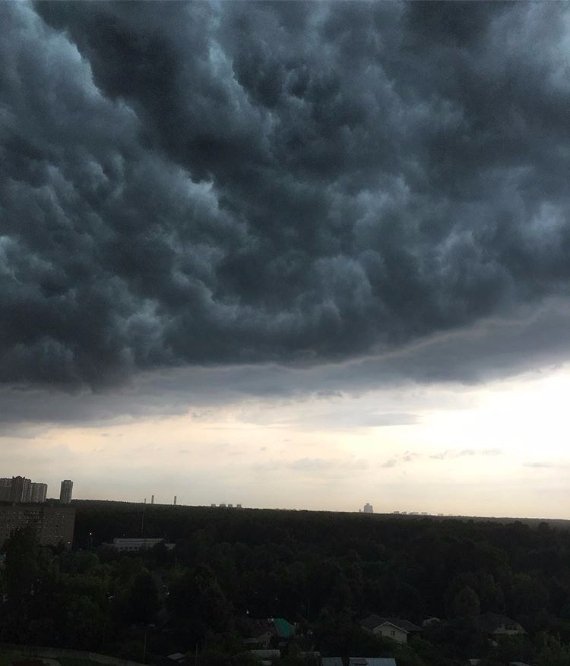 На Москву і Московську область обрушилася потужна гроза з дощем і градом, швидкість вітру досягала до 24 м/с.