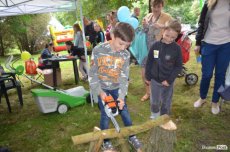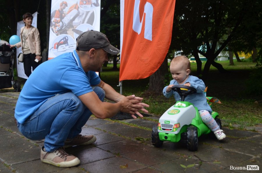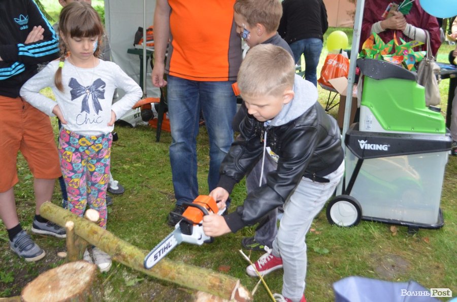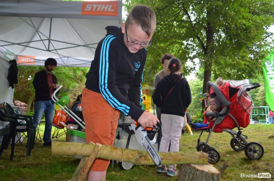 Ще одну цікаву розвагу, яка зібрала чимало дітей, демонстрували продавці у намет із торгової марки STIHL. Тут можна було спробувати себе у ролі лісоруба, садівника чи навіть тракториста. Діти каталися на міні-тракторцях, «різали» дерева іграшковими бензопилами та «косили» з допомогою бутафорних електрокіс.