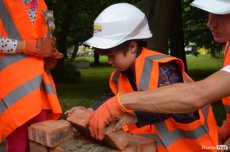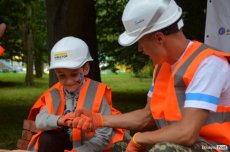 «У нас тут повний спектр робіт – і монтаж, і демонтаж»,- жартували будівельники та закликали малечу приєднуватися. Діти були в захваті від таких розваг, а дорослі залюбки знімкували їх та полегшено зітхали – «буде тепер кому побудувати паркан на дачі».