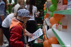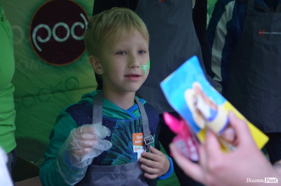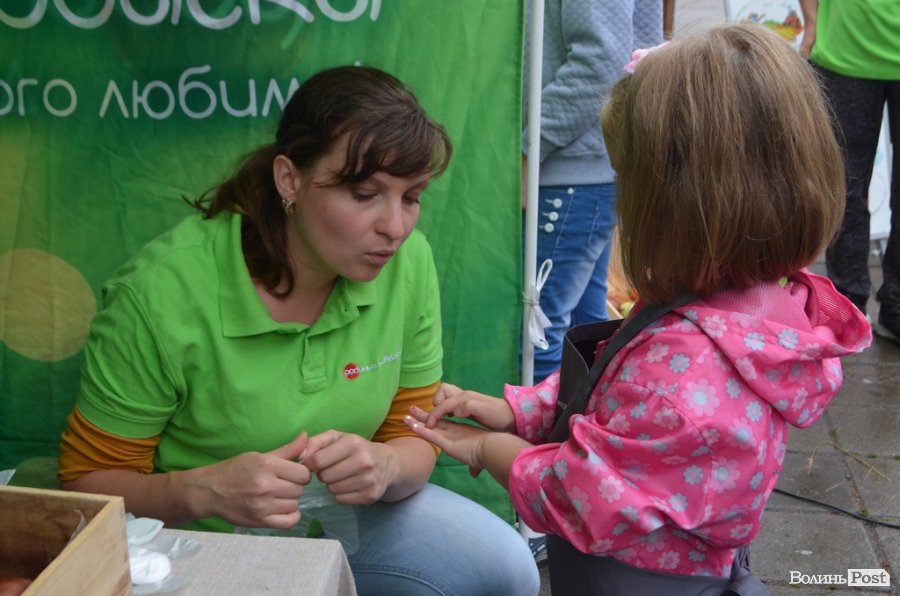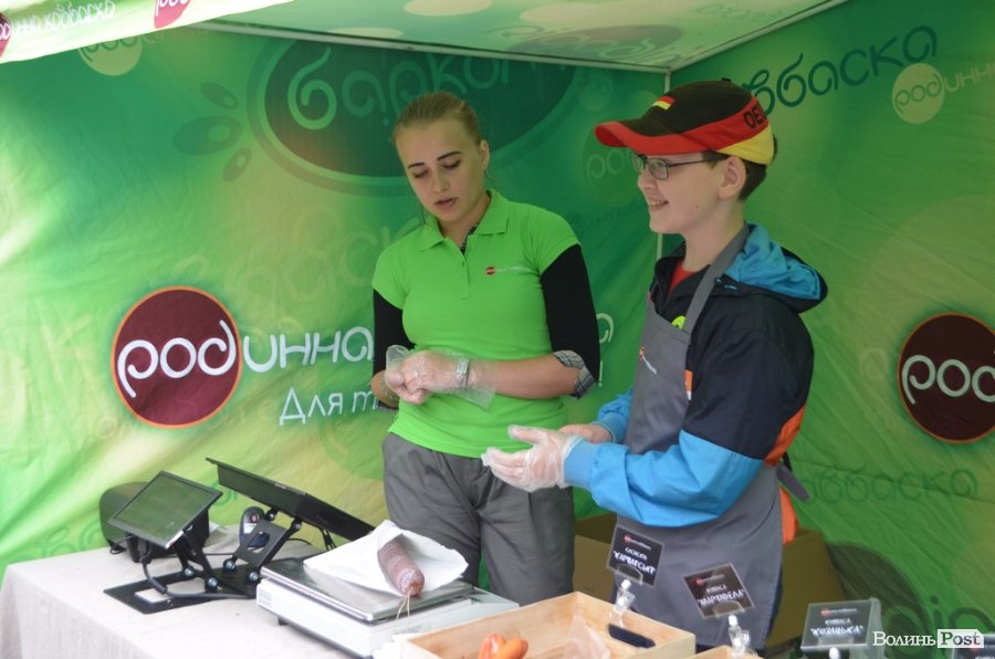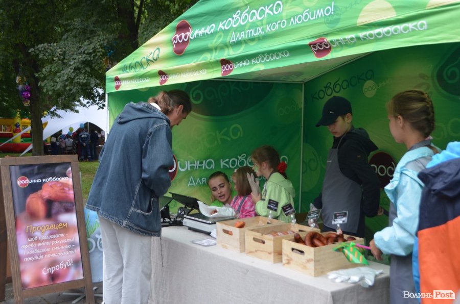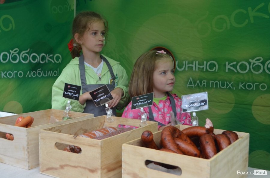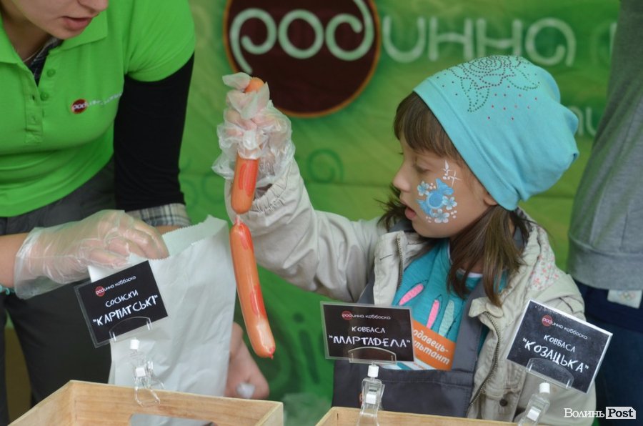 Можна було спробувати себе в ролі продавця та фермера, стенди яких облаштувала «Родинна ковбаска». Дітки з задоволенням «продавали» своїм батькам сосиски та ковбаски, а «фермери» розділяли урожай у різні ящики.
