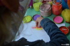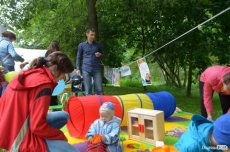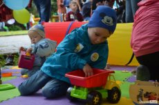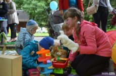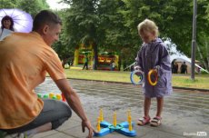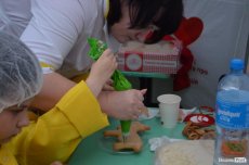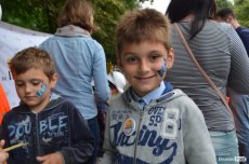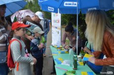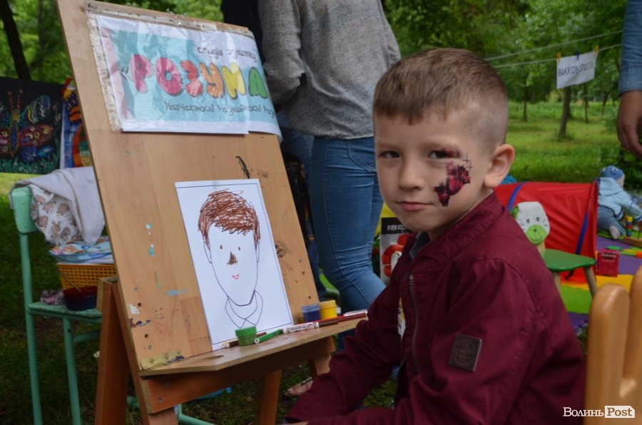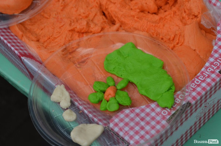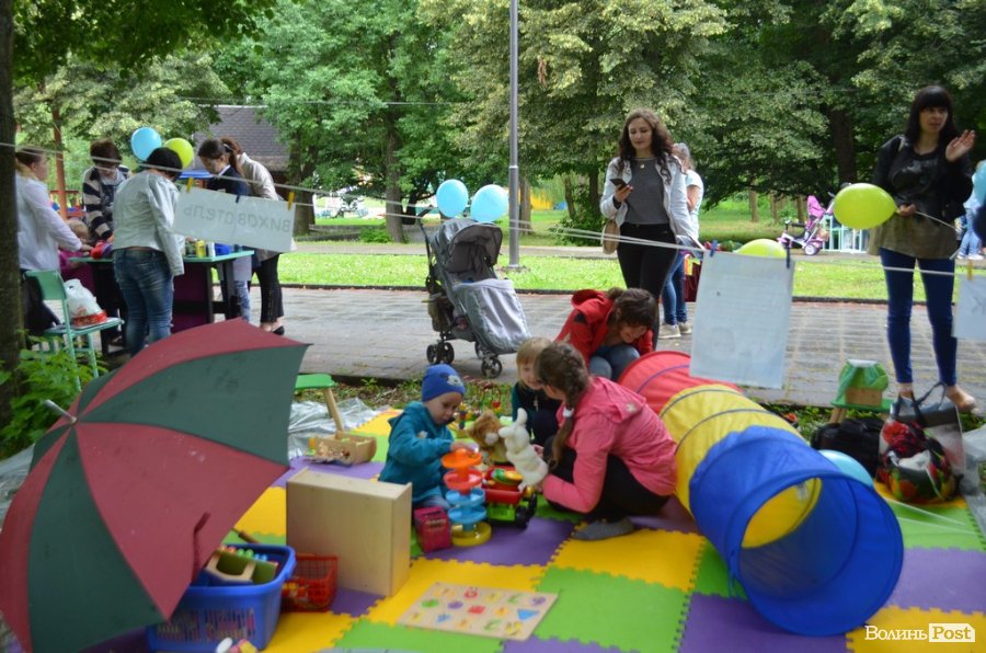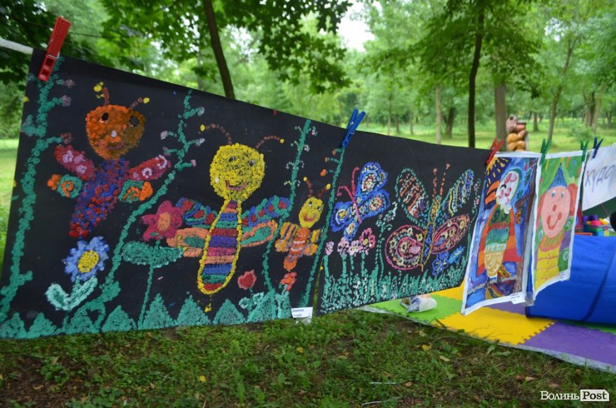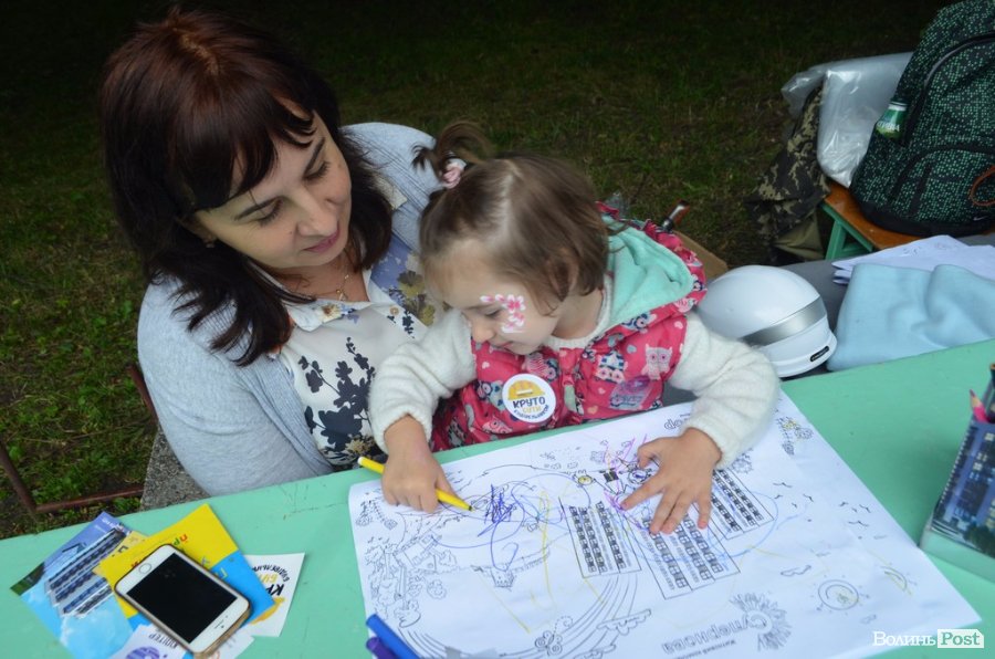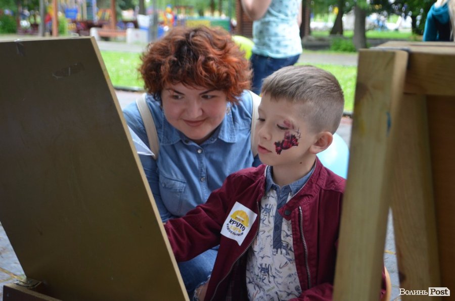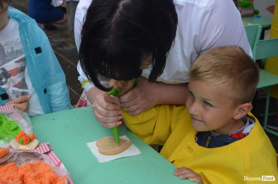 Попри похмуру та подекуди дощову погоду, у центральному парку дуже людно – дітлахи у супроводі батьків навперебій будували стіну, декорували пряники та навіть навчалися основ арт-терапії.