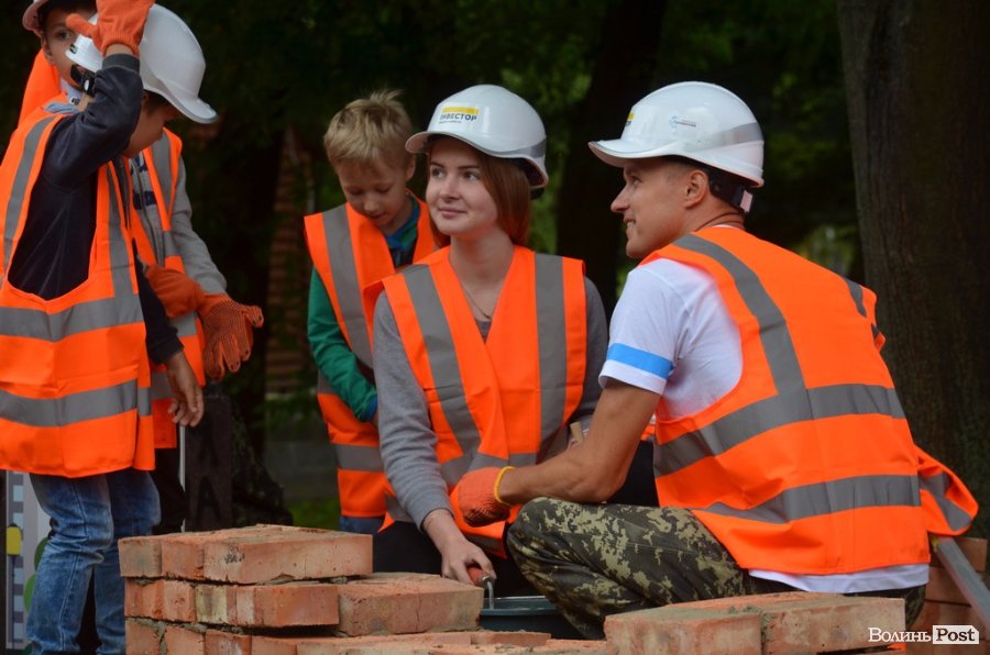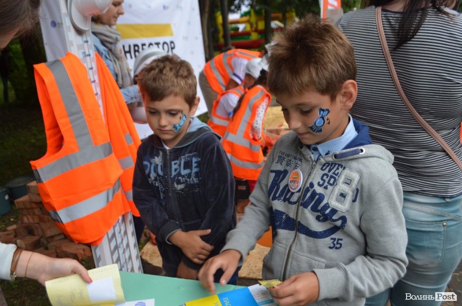 Біля представників кожної професії юрмилося чимало юних лучан. Будівельна компанії «Інвестор» для малечі просто в парку влаштувала міні-будівництво. Найменшим діткам, яким така робота ще не до снаги, підготували можливість трішки побути архітектором. Тому малеча активно малювала по проекту будівництва. Старших діток до роботи допускали згідно із технікою безпеки – на них одягали жилети та каски, а далі у гру вступали справжні будівельники, які займаються проектами «Інвестора».