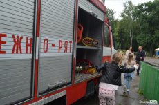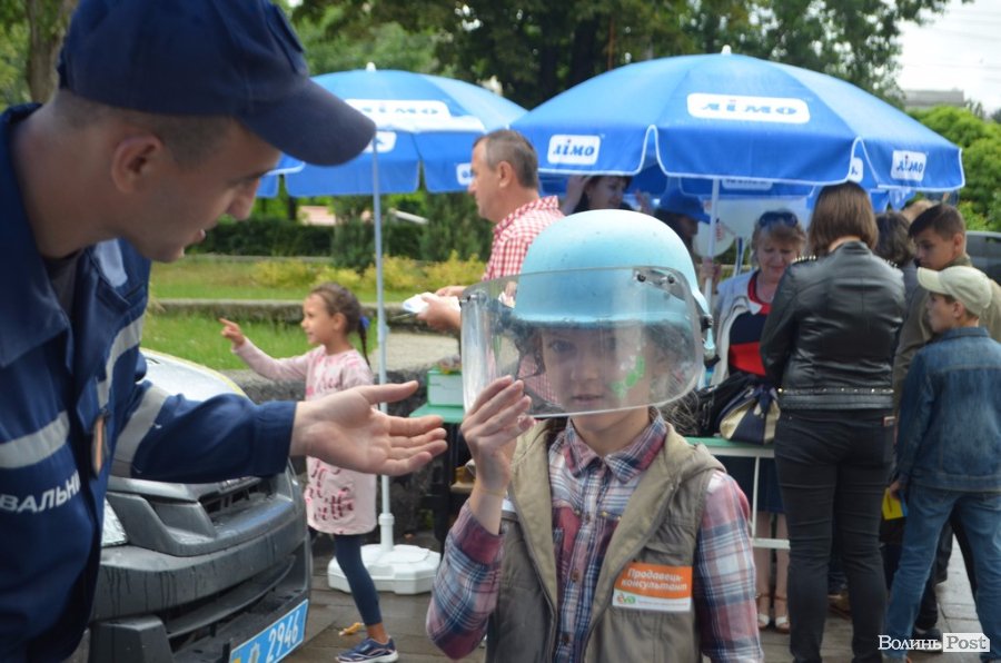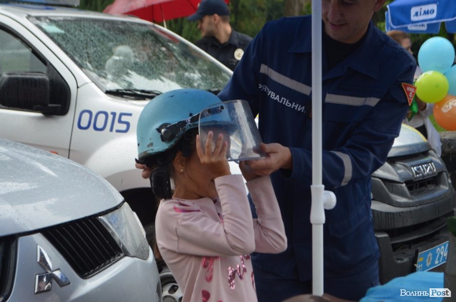 ДСНСнинки демонстрували причандалля із пожежної машини, а їх колеги сапери розповідали, що можна і чого не можна робити, побачивши небезпечні предмети. Зрештою малеча міряла їх важезні шоломи та дивувалася, як «ті дядьки» можуть в них ходити.