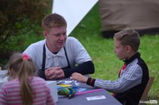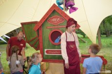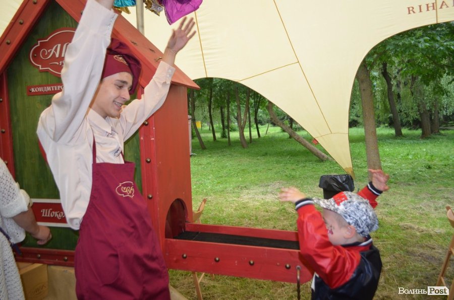 У «кавовому» наметі за правильно виконані завдання ще й пригощали. Тут для тих, хто спробувавши стати баристою декорував стаканчики, готували смачні кавові напої. «АВК» ж присолоджувала майстер-клас шокладними цукерками, які треба було попросити у чарівних птахів із школадного замку.