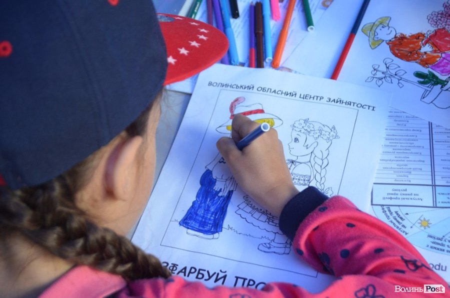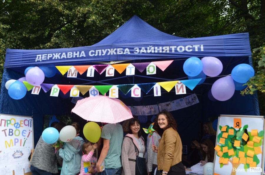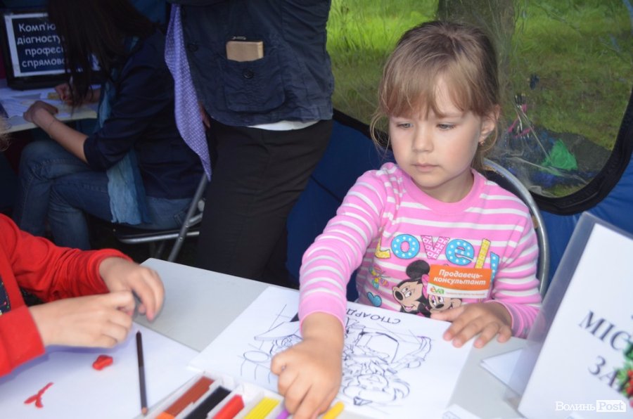 У наметі Луцького міського центру зайнятості дітям допомагали визначитися , ким вони хочуть стати у майбутньому та пропонували розмалювати цю професію, аби відчути її через колір. Також для малечі облаштували дерево бажань, на якому діти вішали стікери із омріяними професіями.