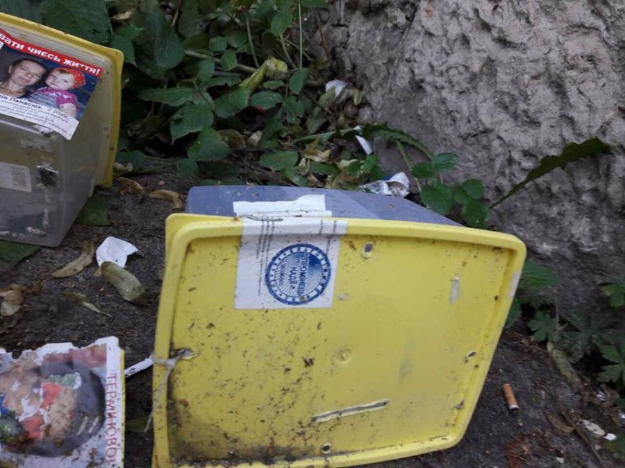 У Луцьку невідомі повикидали скриньки для благодійних зборів пожертвувань.