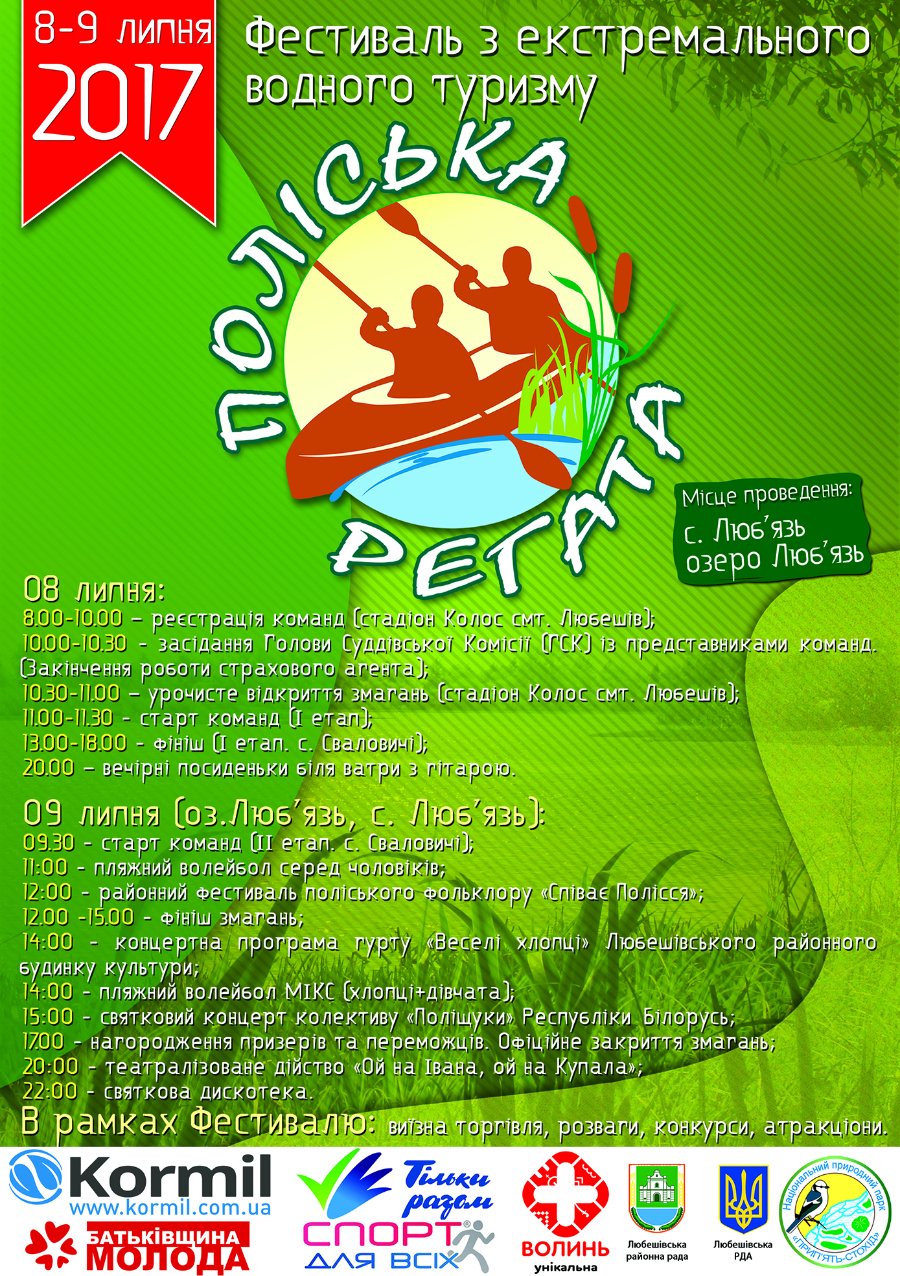 8-9 липня на території національного природного парку «Прип’ять-Стохід» у Любешівсьому районі відбудеться щорічний міжнародний фестиваль з екстремального водного туризму «Поліська регата».