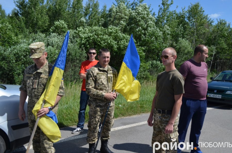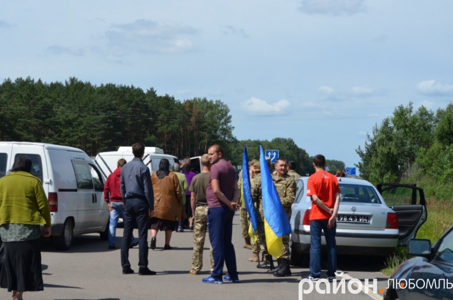 Близько десятка автомобілів прибули на трасу Ковель–Ягодин і в районі «Машівського бору» зустріли траурний кортеж із Героєм.