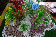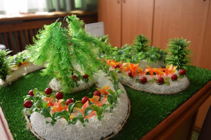 Ескізи майбутніх зелених зон виконані у 3D-форматі – на дерев’яній основі із пластикових зразків кущів та декоративного каміння.