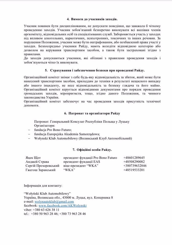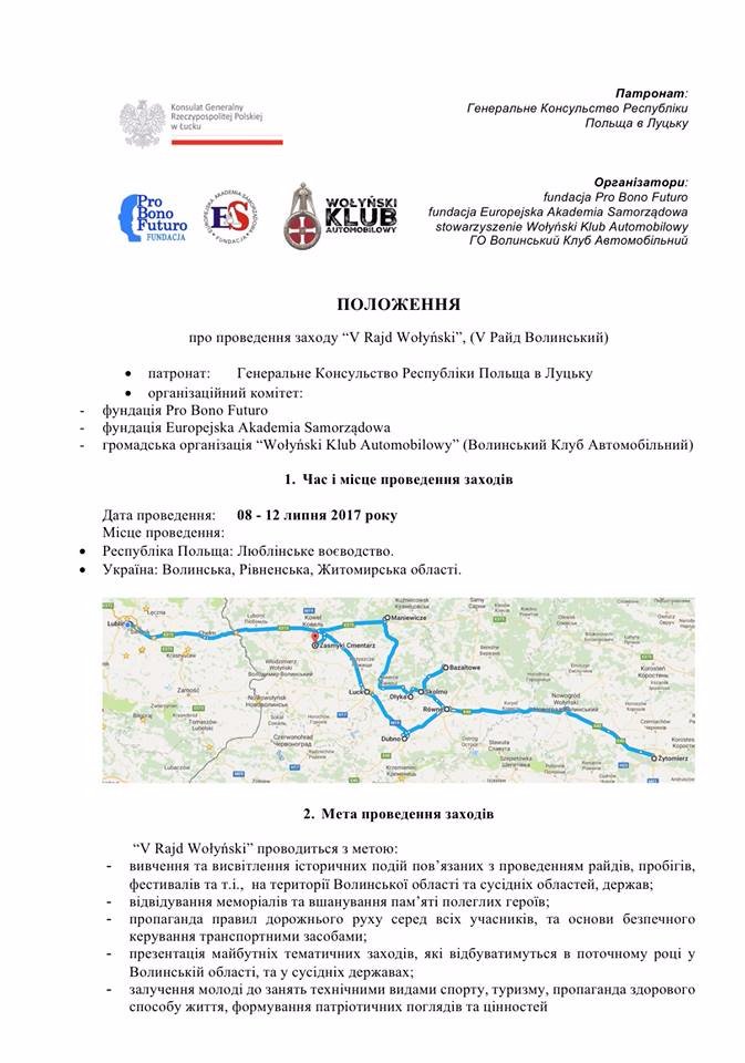 Громадська організація «Волинський Клуб Автомобільний» 8-12 липня проведе V міжнародний автомобільно-мотоциклетний пробіг «V Rajd Wołyński». Українці та поляки разом подолають 1250 кілометрів дорогами Республіки Польщі та України.