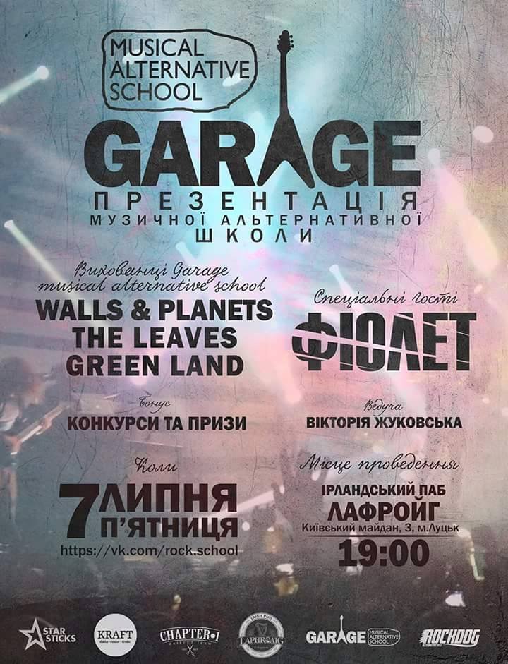 У Луцьку презентують музичну альтернативну школу «GARAGE!». Спеціально запрошеним гостем концерту буде гурт «Фіолет», який має луцьке коріння.