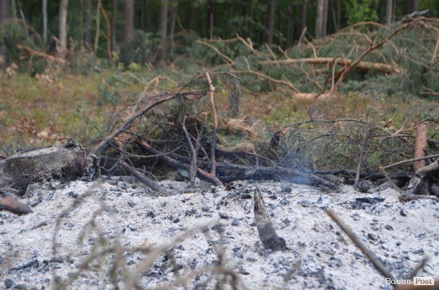 До слова, рубки тут тривають на кількох ділянках. На кварталі 47 нещодавно вирубали чимало сосен та залишили купи гілля сміття, колод та згарище.