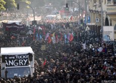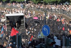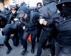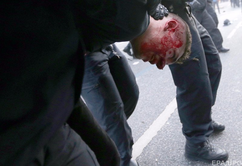 Як повідомляє The Telegraph, демонстранти кидали димові шашки і скляні пляшки в поліцію. Щоб втихомирити натовп правоохоронці у відповідь використовували водомети, - пише Новое Время.