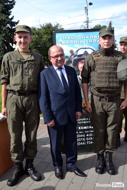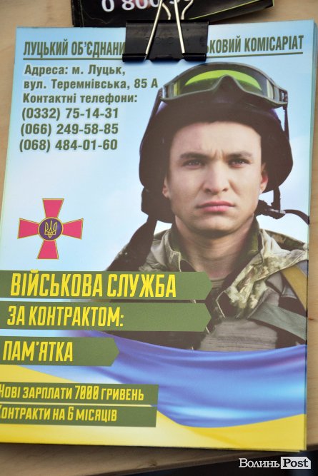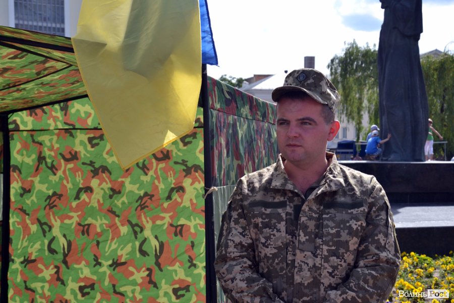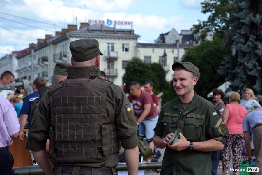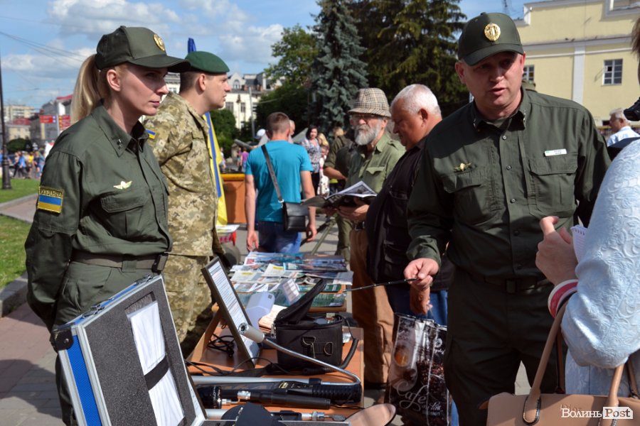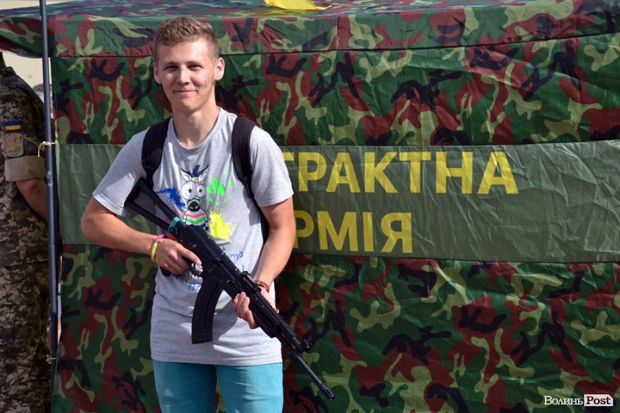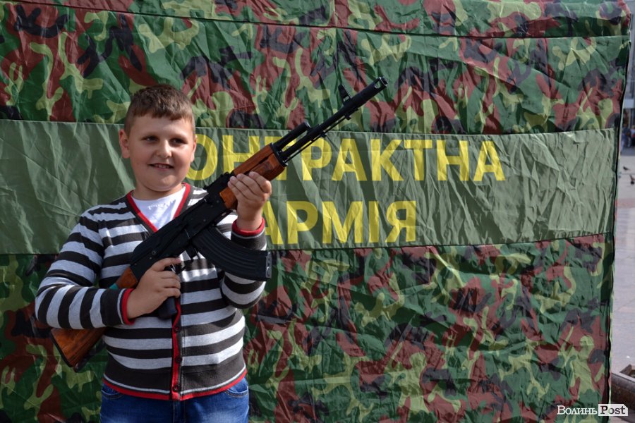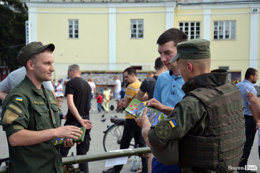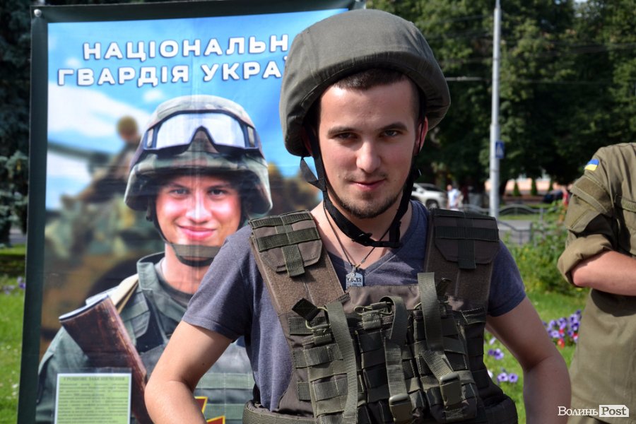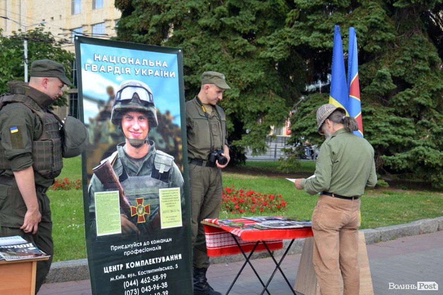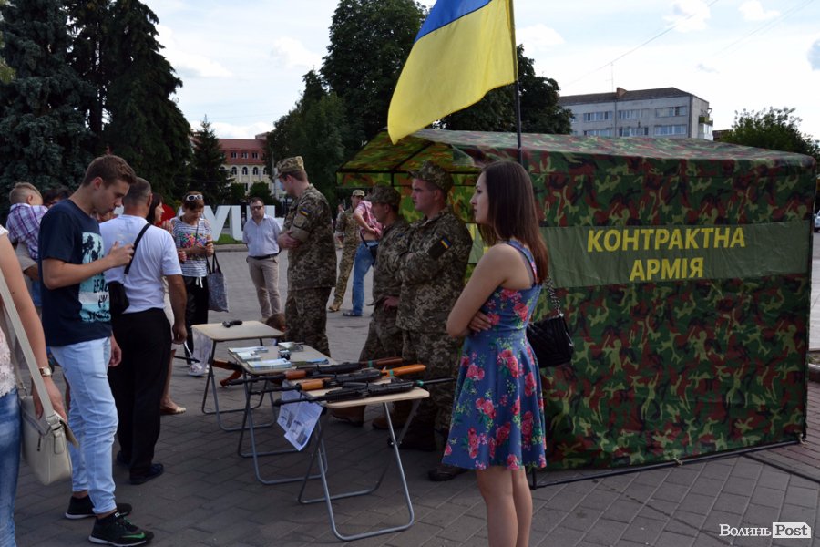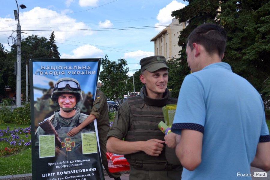 На Театральному майдані Луцька військовослужбовці Національної гвардії України, Держприкордонслужби та Збройних сил спільно влаштували акцію «Волинський контрактник». У рамках дійства під звуки військового оркестру «рекламували» службу за контрактом, а гості охоче приміряли бронежилети та фотографувалися зі зброєю.