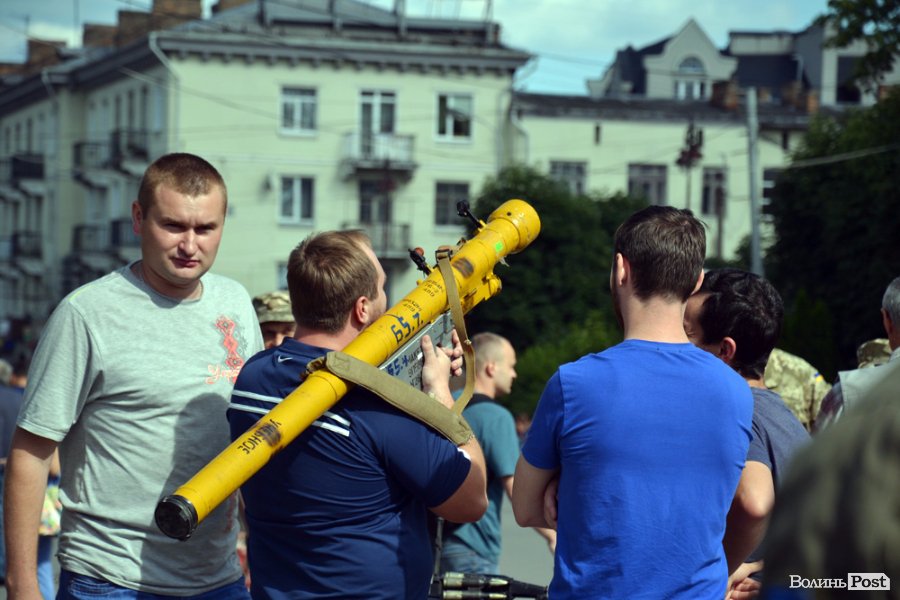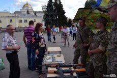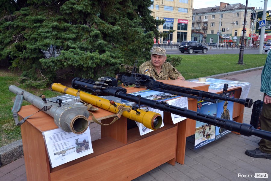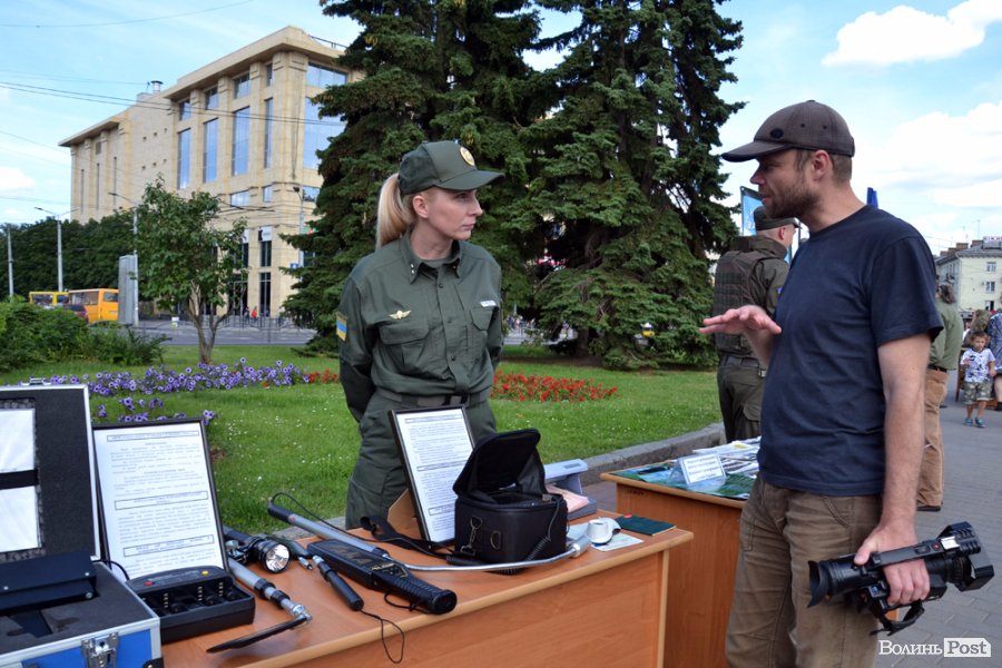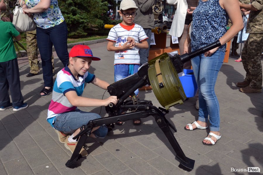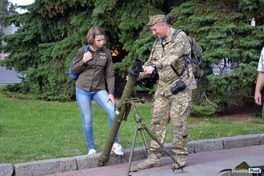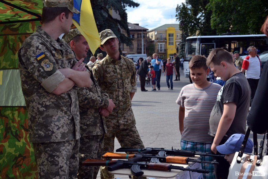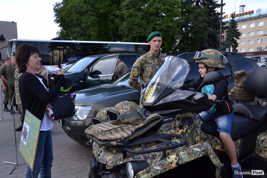 Військовослужбовці та прикордонники розгорнули чималу експозицію: виставку зброї, бойової техніки та спеціального обладнання, оптику, автівки та амуніцію. Поруч - світлини низки волинян-учасників АТО з проекту «Герої серед нас». Супроводжувалося дійство «народними хітами», які віртуозно виконував військовий оркестр.