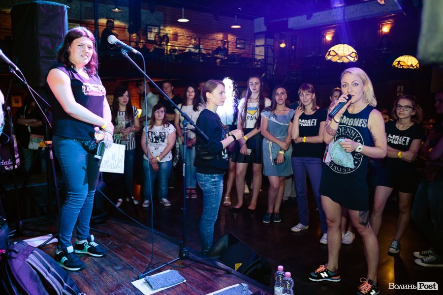 Ведуча вечора Вікторія Жуковська розіграла серед присутніх цінні подарунки, зокрема місяць безкоштового навчання в альтернативній рок-школі та безкоштовні квитки на музичний фестиваль "Бандерштат".