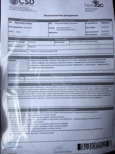 Жінці встановили страшний діагноз: високоагресивна В-великоклітинна лімфома четвертої стадії. Жінка екстрено потребує 8 курсів хіміотерапії та подальшої реабілітації. Лікарі дають 40% шансів на одужання та повноцінне життя. Важливо їх не втратити зараз, тому допомога всіх небайдужих людей дуже необхідна.