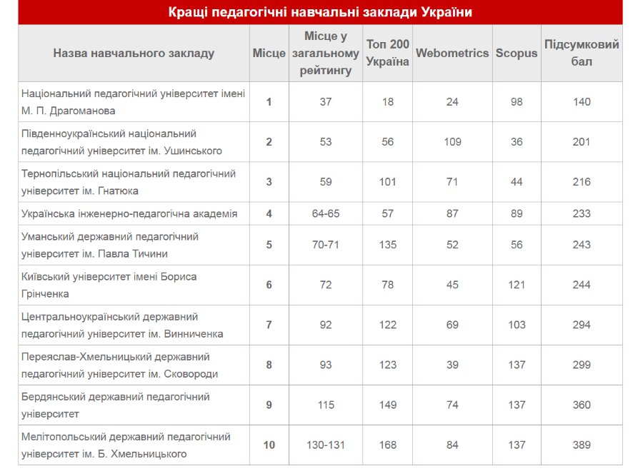 ТОП-10 педагогічних вишів України