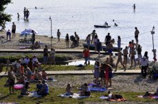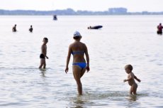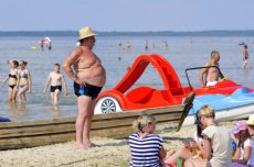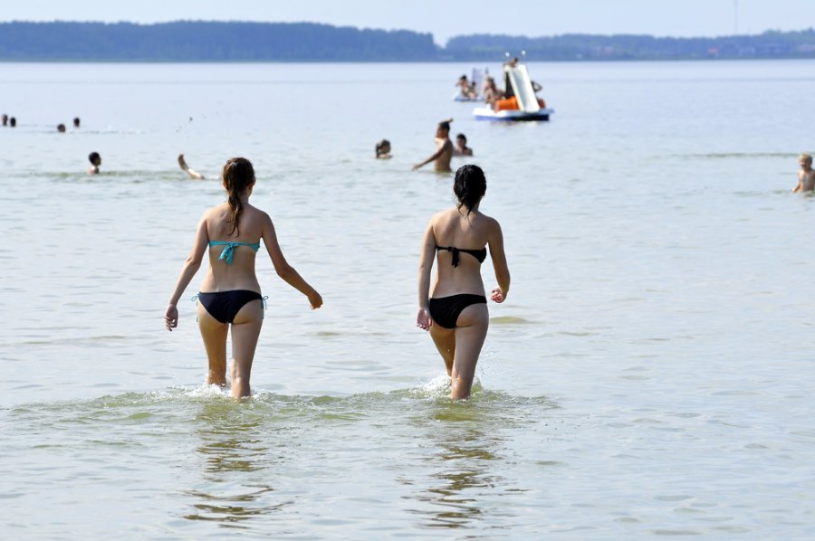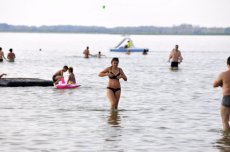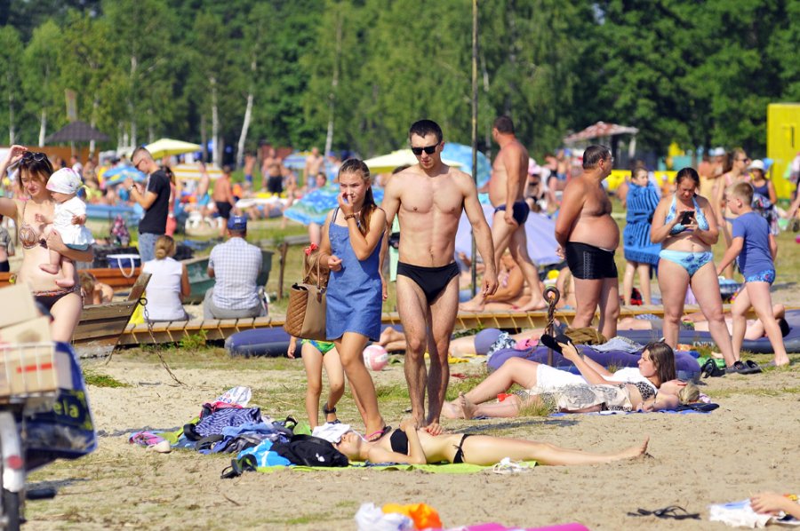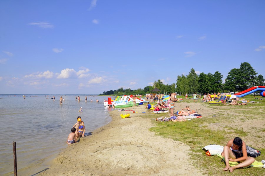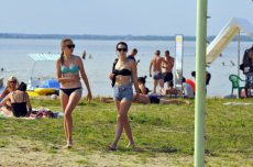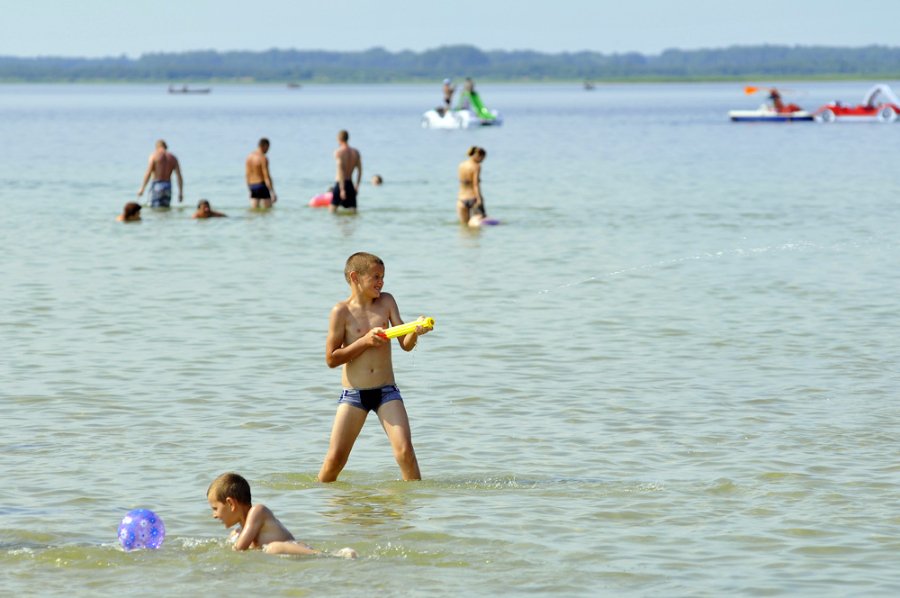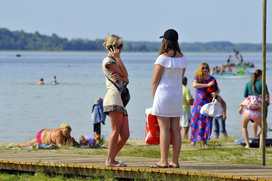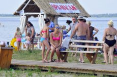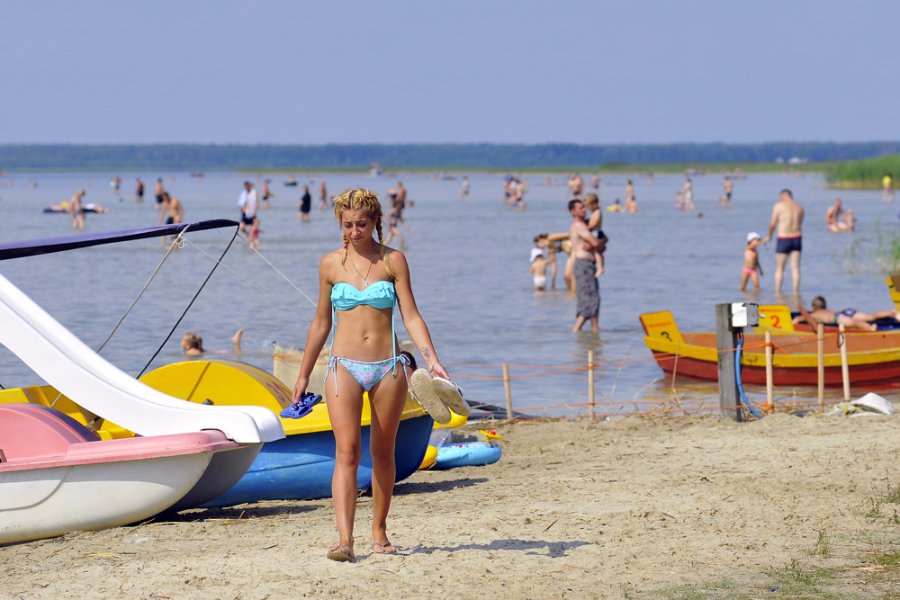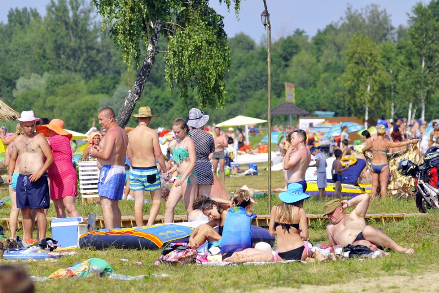 Попри середину тижня пляжі на озері Світязь заповнені людьми.