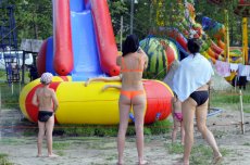 У середу, 12 липня, був погожий сонячний день, тому й людей на місцевому пляжі було вельми багато. Хтось прийшов полежати й позагоряти, хтось попити пива, хтось почитати книгу і лише дітвора не знає спокою. Малеча бігає між відпочивальникам, копає ями в піску та льопається в воді.