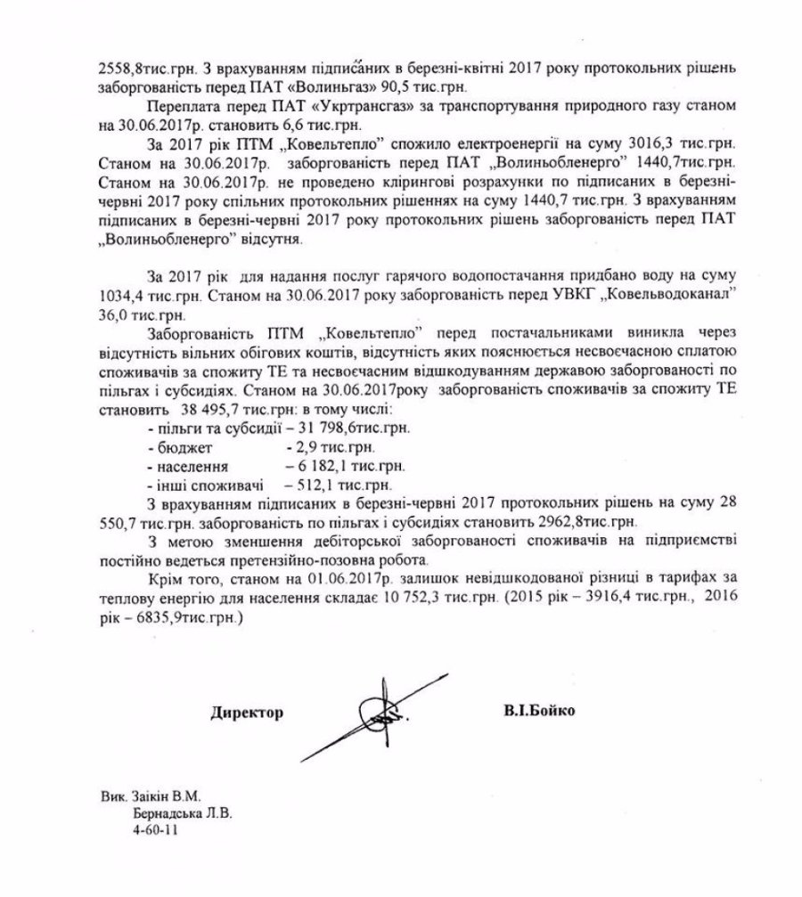 Директор ПТМ «Ковельтепло» Володимир Бойко інформує виконавчий комітет міської ради, що борги перед НАК «Нафтогаз України» за постачання природного газу становлять 23,4 мільйонів гривень.