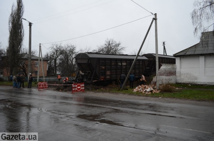 "Цей старий вагон долетів аж до асфальту. Метрів п'ять їхав по землі, нарив купу ям. В ґрунт і встряг, - продовжила жінка. - Зараз його відтягли, й досі стоїть посеред вулиці, перекрив дорогу. З інших вагонів працівники залізної дороги цілий день вантажили кукурудзу на трактор".