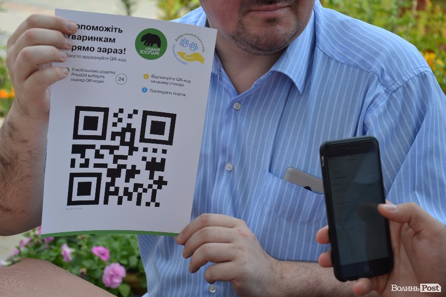 «Сьогодні ми презентуємо благодійний проект спільно із Луцьким зоопарком. Це внесення благодійних коштів за допомогою платежів QR-код, що ми активно розвиваємо. Ми маємо ось такі плакатики, на яких є QR-код. Вони вже розвішені на багатьох вольєрах. Ми надіємось, що буде корисна допомога від цих нових технологій», - зазначив Войтенко.