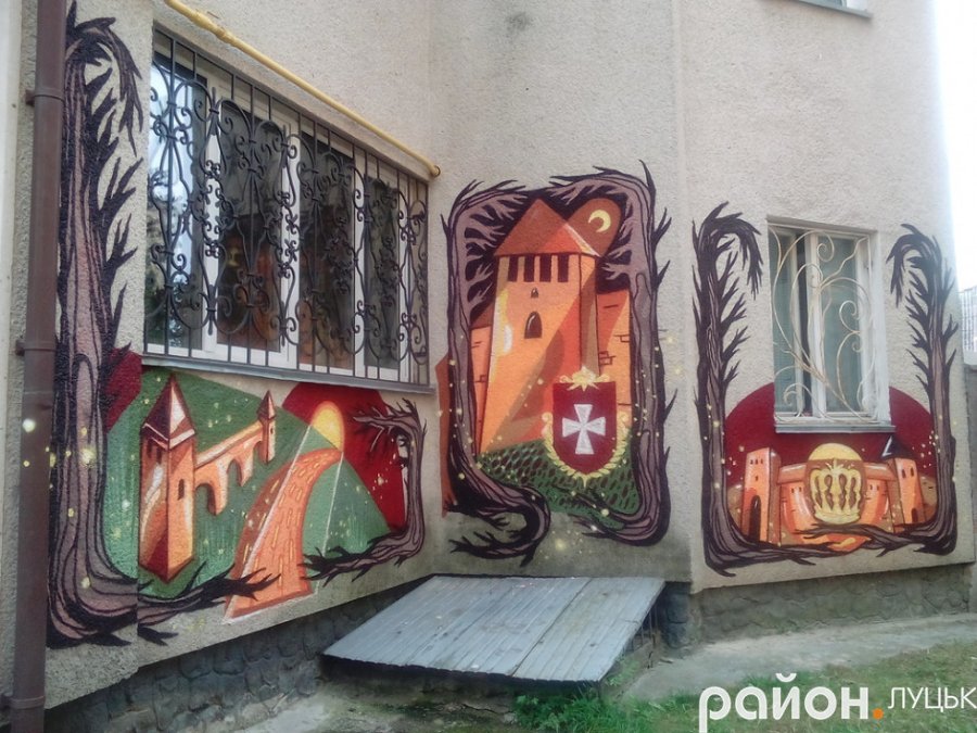 У Луцьку з’явився ще один яскравий куточок, який милує око. На вулиці Крилова художники розмалювали стіну у середньовічному стилі.
