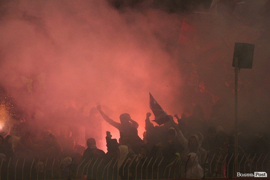 Не зважаючи на те, що глядачів на трибунах було не багато, підтримку луцька команда відчувала завдяки постійному скандуванню фанатського сектору. Під кінець другого тайму гру навіть на декілька хвилин зупинили, тому що фанати запустили десятки фаєрів.