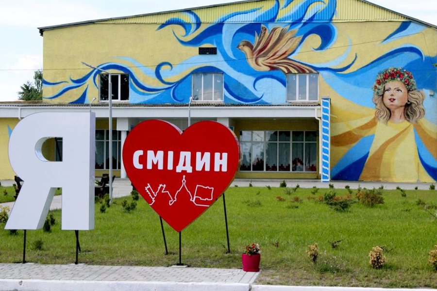Активісти громадської організації «Смідинська ініціатива» спільно із нардепом вирішили розташувати «візитівку» села просто перед будинком культури, в центрі населеного пункту.