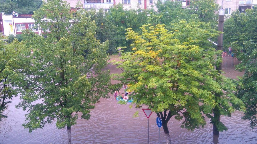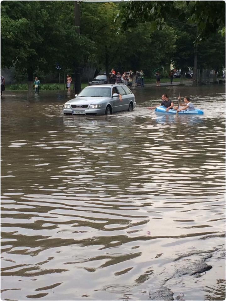 То випадково не Пустовіт з Поліщуком на човні зливні колектори випливли чистити? Молодці, спасають місто від повені!!!