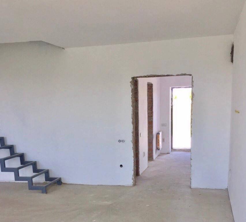 У будинку є чистова стяжка та чистова штукатурка, а також уже встановили радіатори опалення та двоконтурний газовий котел.