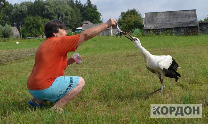 У селі Красноволя Любомльського району небайдужі люди рятують пораненого лелеку.