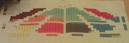 За ними сидітимуть депутати, обрані від ПР на мажоритарних округах, "Батьківщина" залишиться фактично на тих же місцях, але в зменшеному вигляді", депутати "УДАРу" займуть майже всі колишні місця фракції НУНС, "а жовтим кольором позначені місця ВО "Свобода".