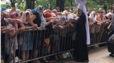 О 13:00 на Володимирській гірці почався молебень, який проводить предстоятель УПЦ (МП) митрополит Онуфрій.