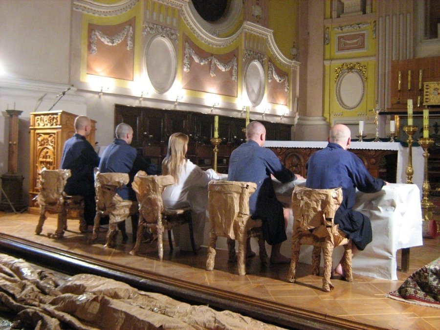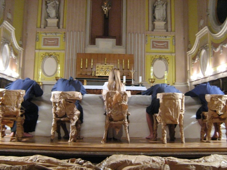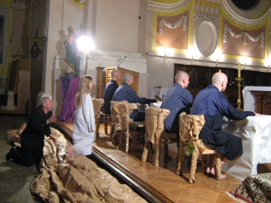 Головний герой омивав акторів водою і вони вставали, йдучи до вівтаря. Опісля в храмі з’явилася дівчинка, символізуючи ангела: підійшла до вівтаря та сіла за стіл разом з іншими героями вистави.