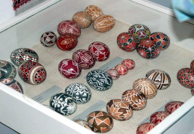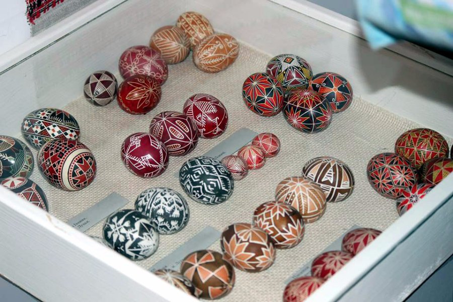 На виставці представлено традиційні й авторські писанки, ансамблі жіночого святкового вбрання, вишивані й ткані рушники. Загалом експонується 226 творів.