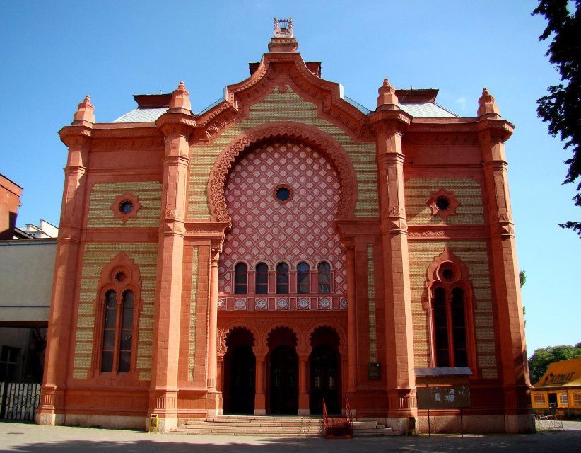 От на театральній площі розташована велична єврейська синагога. Зазначимо, що аналога їй немає в усій Європі. Сама споруда виконана в неомавританському стилі – поєднання романтизму з візантійськими та арабо-марокканськими мотивами.