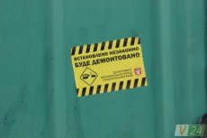 Пані Галина, мешканка будинку, розповідає, що представники муніципальної поліції поклеїли на двері споруд жовті наклейки з підписом «Встановлено незаконно. Буде демонтовано».