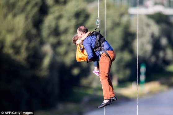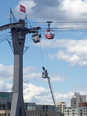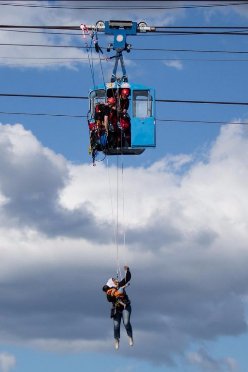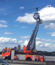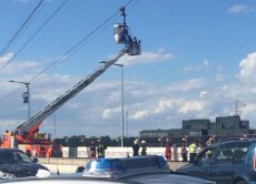 А от тим, хто завис над водою, пощастило менше. Їм порятунку довелося чекати кілька годин. Людей з висоти у 40 метрів тросами спускали на човни. В операції брали участь 100 пожежників. Після порятунку одну жінку доправили в лікарню.