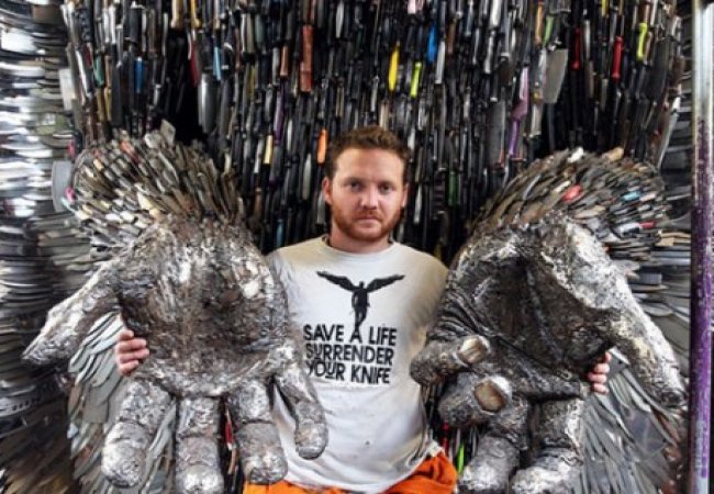 Скульптор Альфі Редлі створив велику скульптуру із ножів, які використовувалися в злочинах по всій Англії і Уельсу.