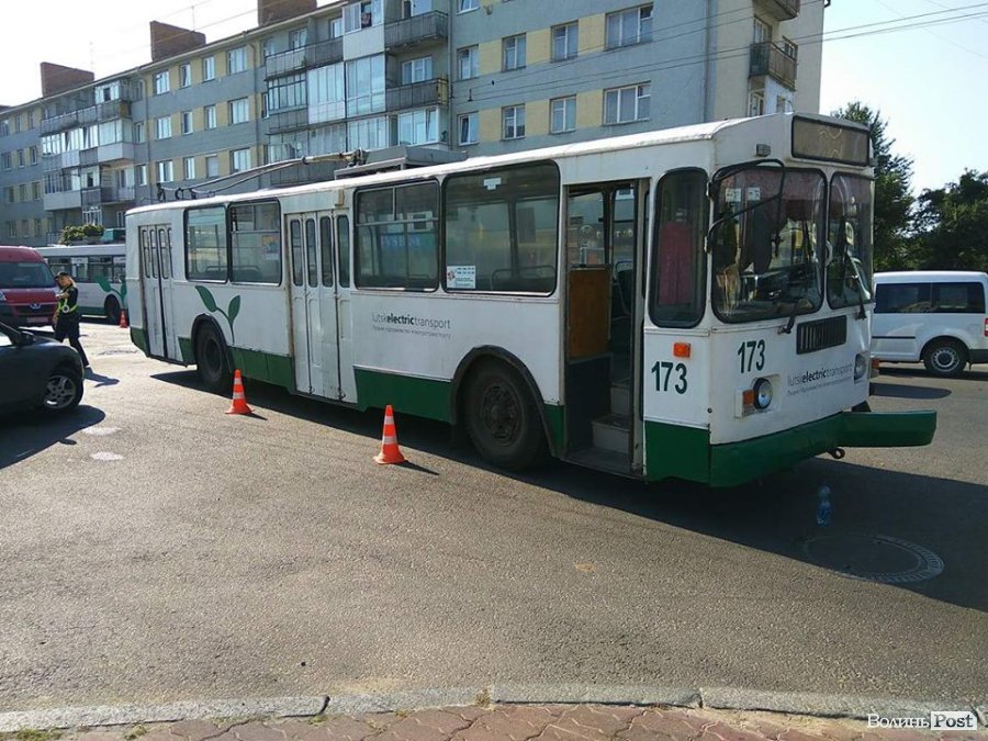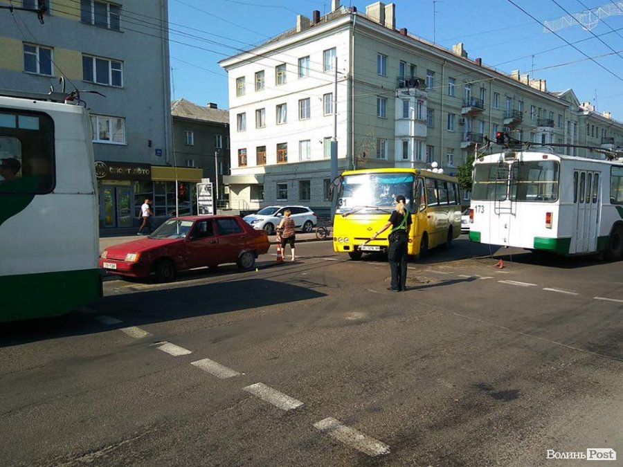 Аварія в центрі Луцька: легковик зіткнувся з тролейбусом
