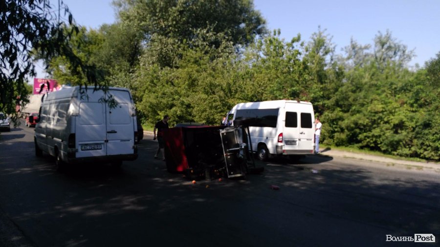 У Луцьку сьогодні, 1 серпня, сталася аварія, під час якої зіткнулися Mercedes Sprinter та Volkswagen Passat.