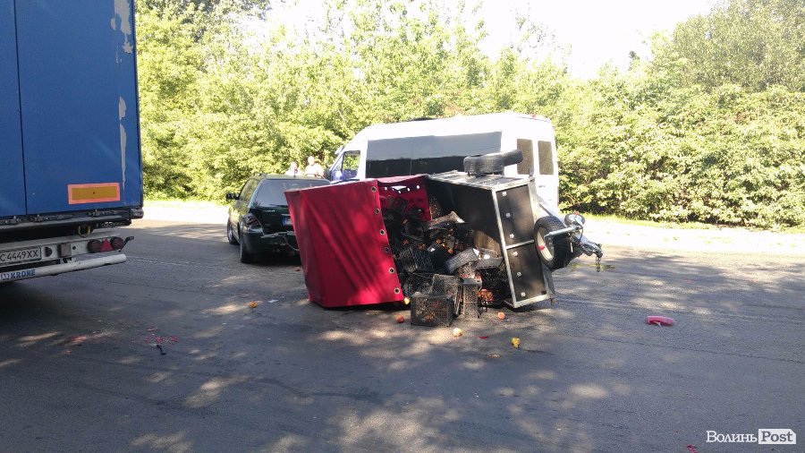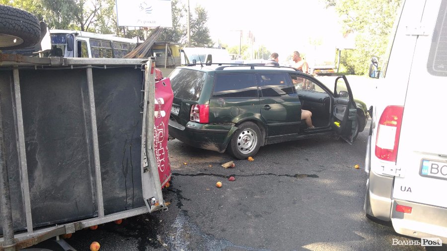 Аварія на Набережній: перекинувся причіп з фруктами. ОНОВЛЕНО