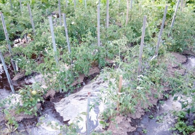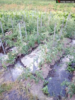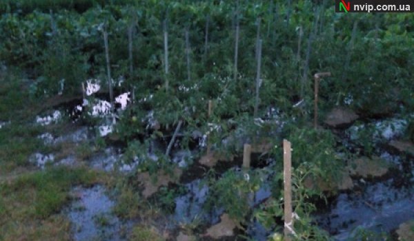 Затопило людський город, на якому висаджені огірки та помідори. "Я ж його вже не зможу їсти, а стільки часу було витрачено весною, щоб усе посадити!", - жаліється жінка. Запах біля будинку стоїть такий, що неможливо дихати.