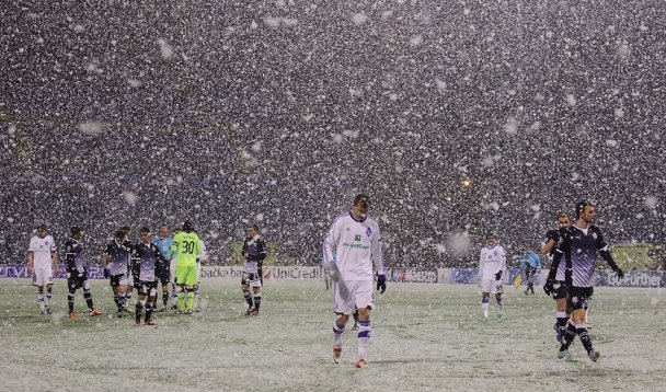 Матч розпочався у важких погодних умовах - у Загребі йшов сніг - і через дев'ять хвилин після стартового свистка арбітр відвів команди в роздягальні, пише ТСН.