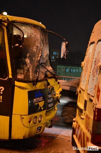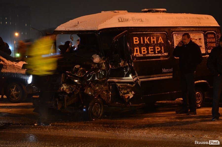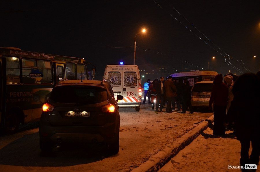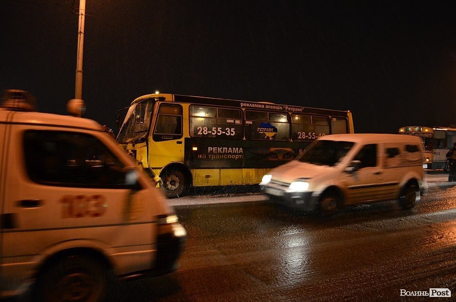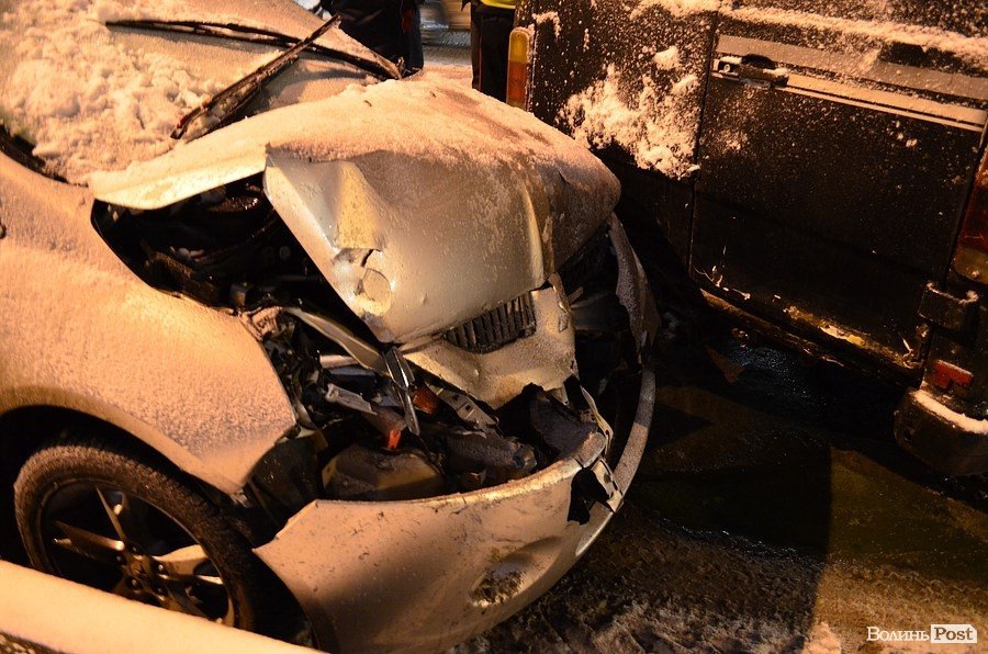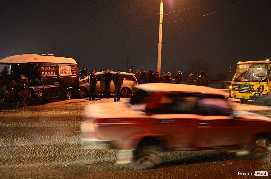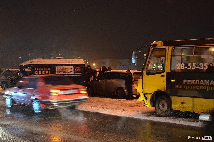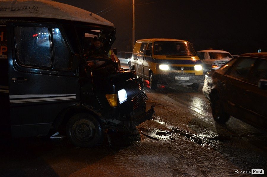 Аварія у Луцьку: через слизоту зіткнулися мікроавтобус, маршрутка і легковик. ФОТО