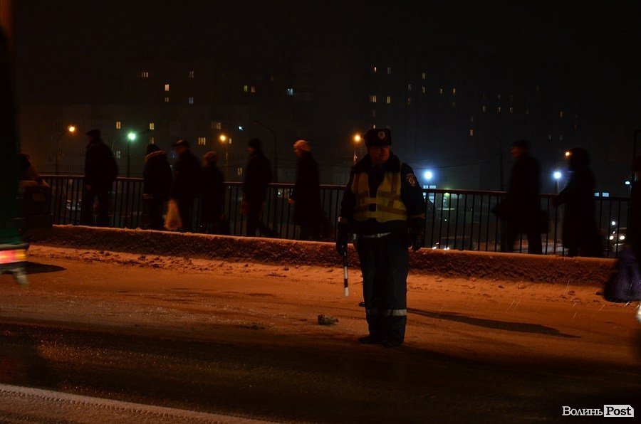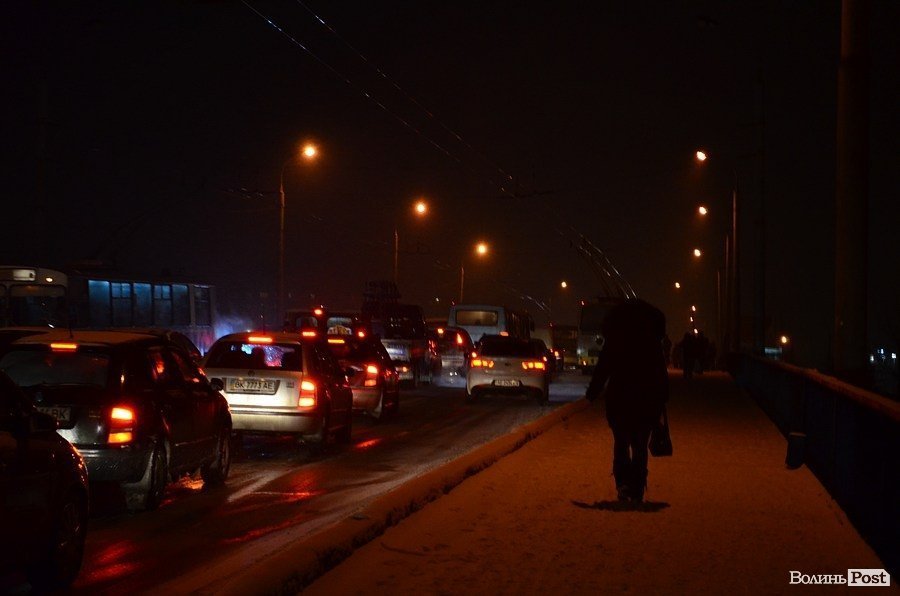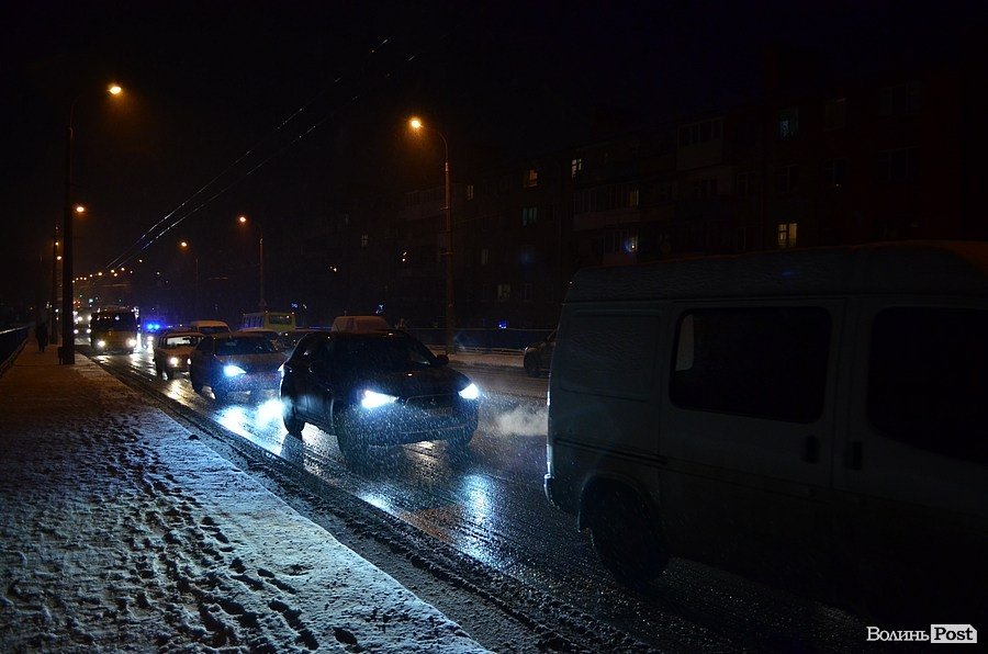 Покриття на проїзній частині шляхопроводу дуже слизьке - практично лід. Багато авто пробуксовують на місці.