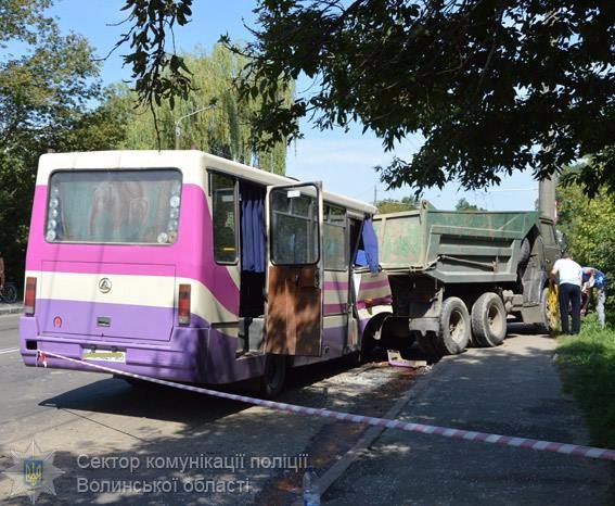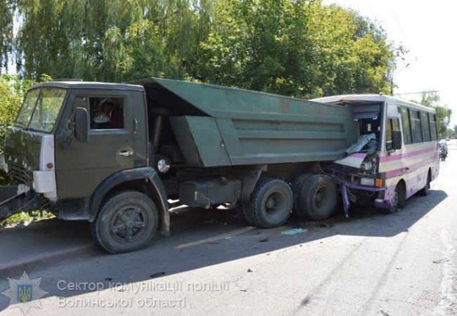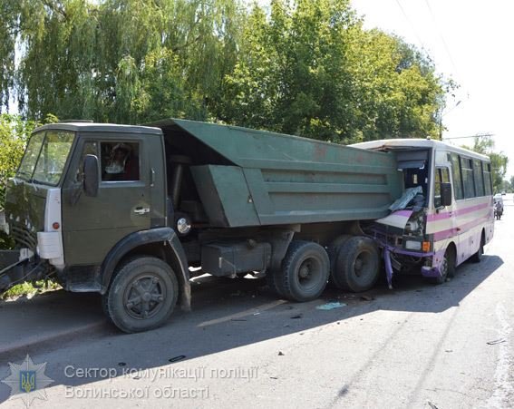 За кермом маршрутного таксі, сполученням Луцьк – Колки, перебував 57-річний житель Рожищенського району. Керуючи транспортним засобом, водій допустив зіткення з вантажівкою Камаз, під керуванням 66-річного лучанина, яка рухалася у попутному напрямку.